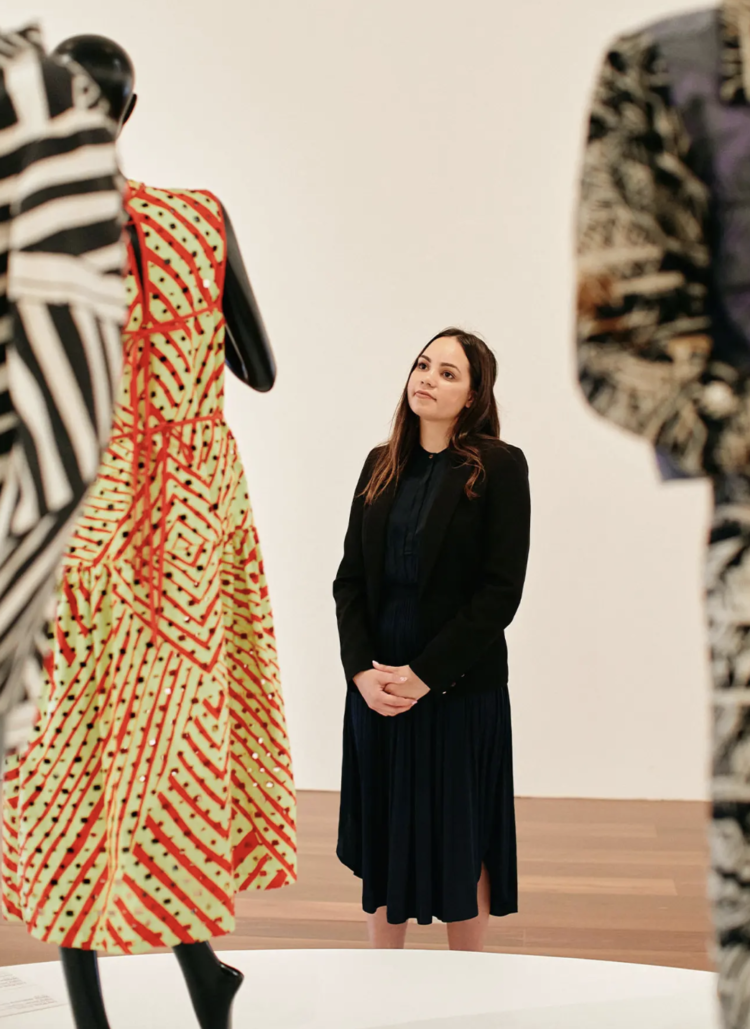 Her writing has been published in catalogues, art journals and major fashion media. She is the author of Piinpi: Contemporary Indigenous Fashion (2020) and What’s on Your Mind? Josh Muir (2019), and co-author of Desert Lines: Batik from Central Australia (2019). Her essays and profiles have appeared in Vogue Australia, Harper’s Bazaar and Art Guide Australia, as well as institutional publications such as NGV Triennial (2023–24), New Australian Printmaking (2022) and Queer: Stories from the NGV Collection (2022).